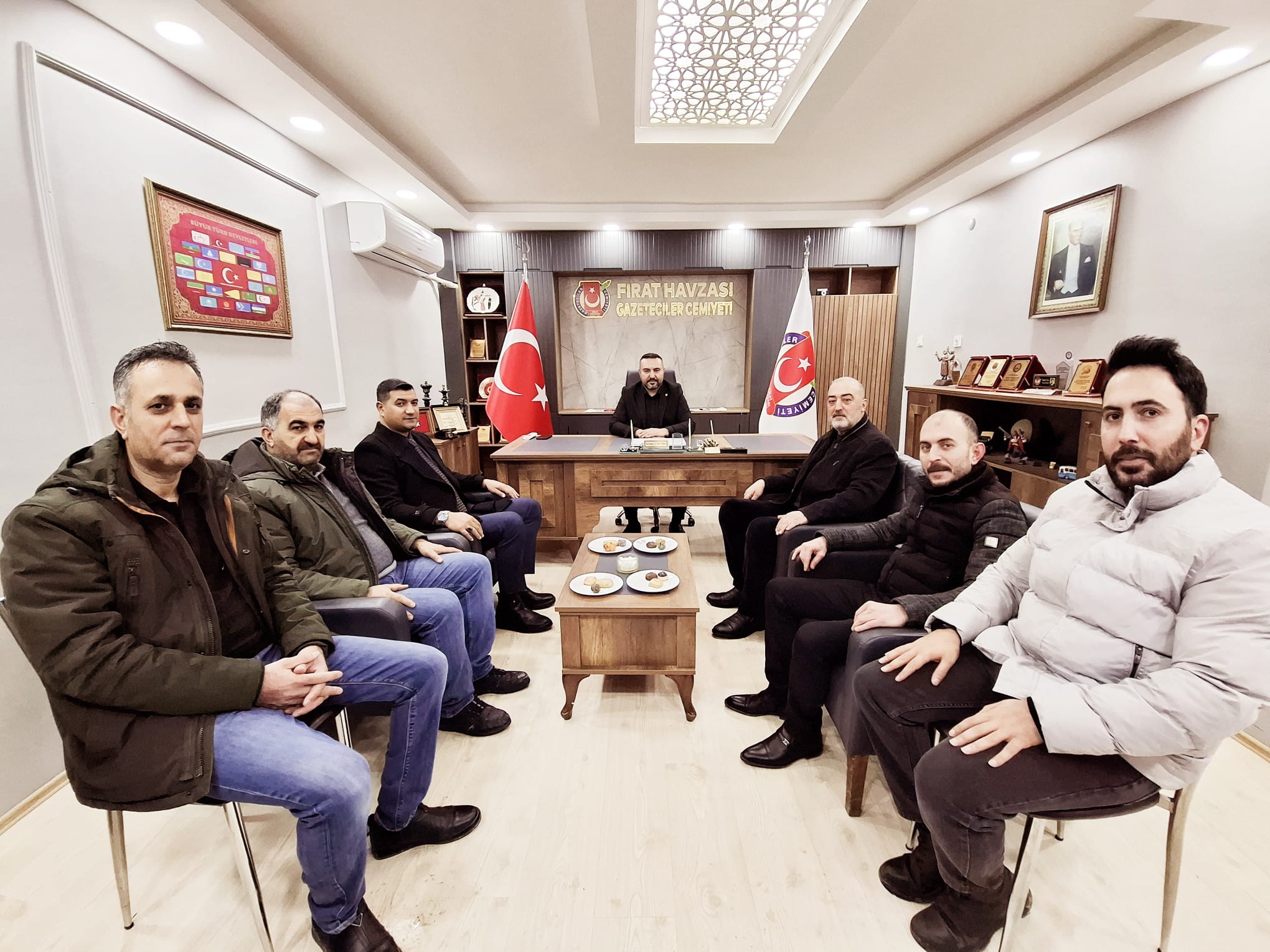 Yeniden Refah Partisi Merkez İlçe Başkanı Mücahit Çevik ve yönetim kurulu üyeleri, Fırat Havzası Gazeteciler Cemiyeti’ni ziyaret ederek gündeme dair değerlendirmelerde bulundu.